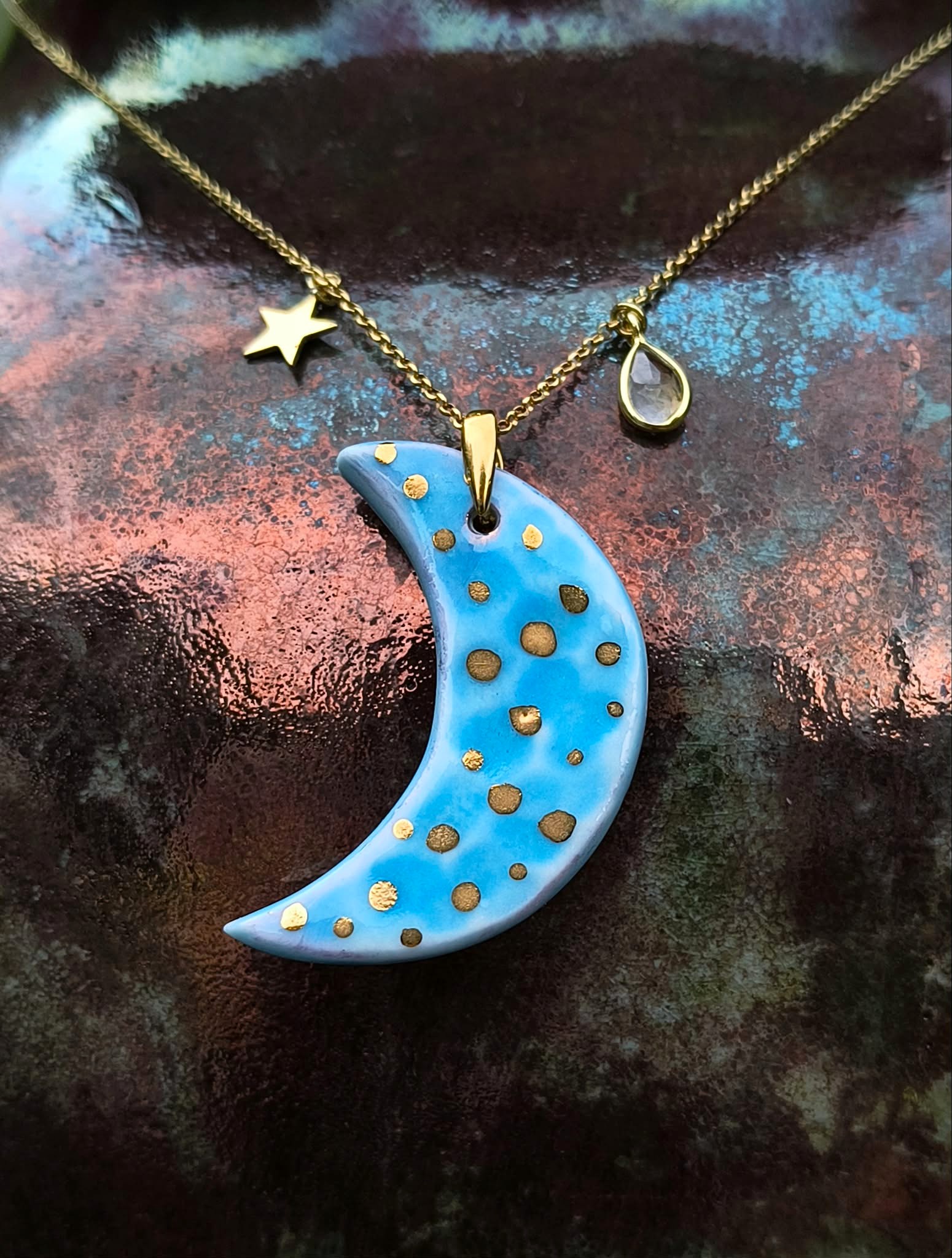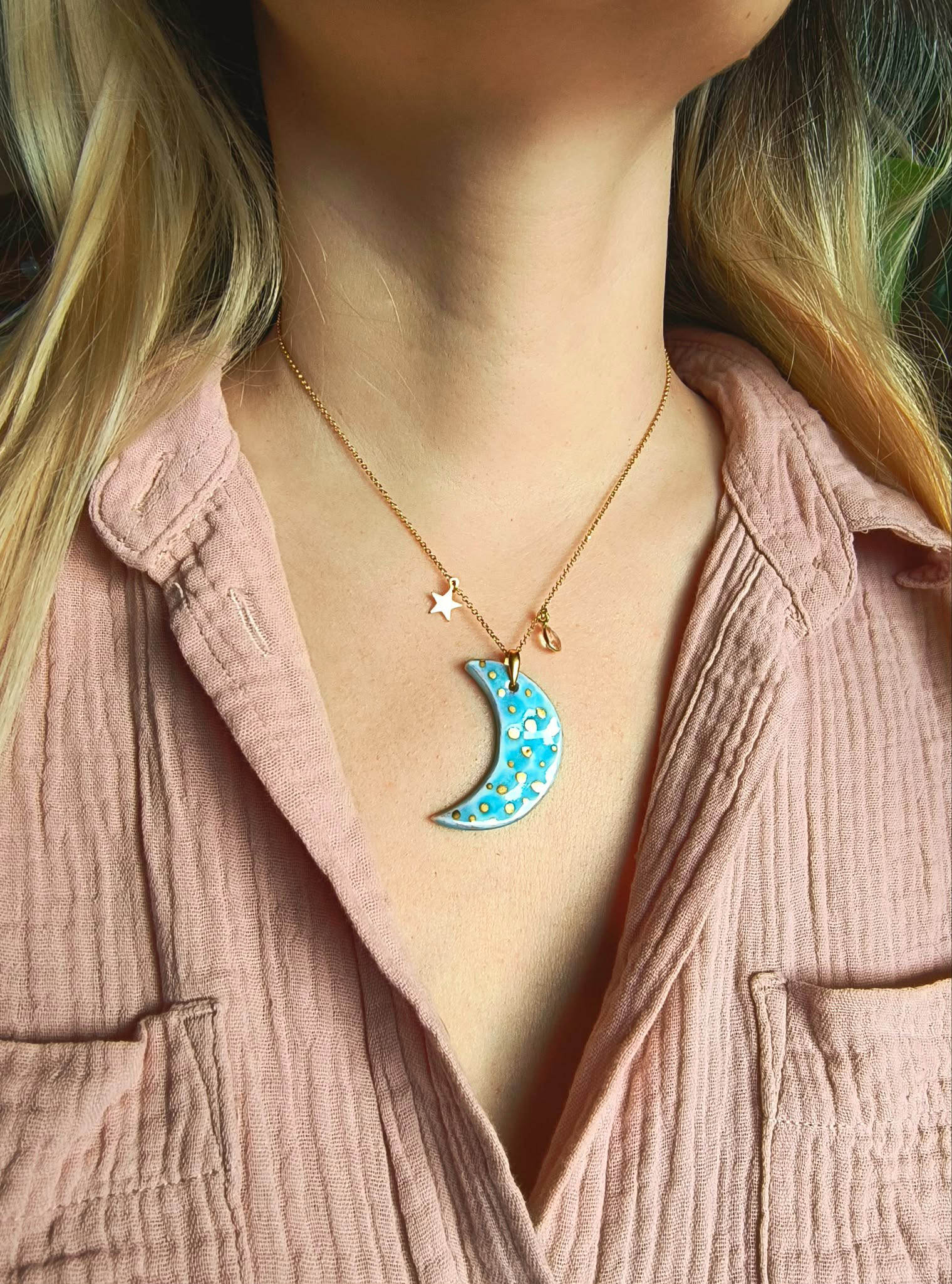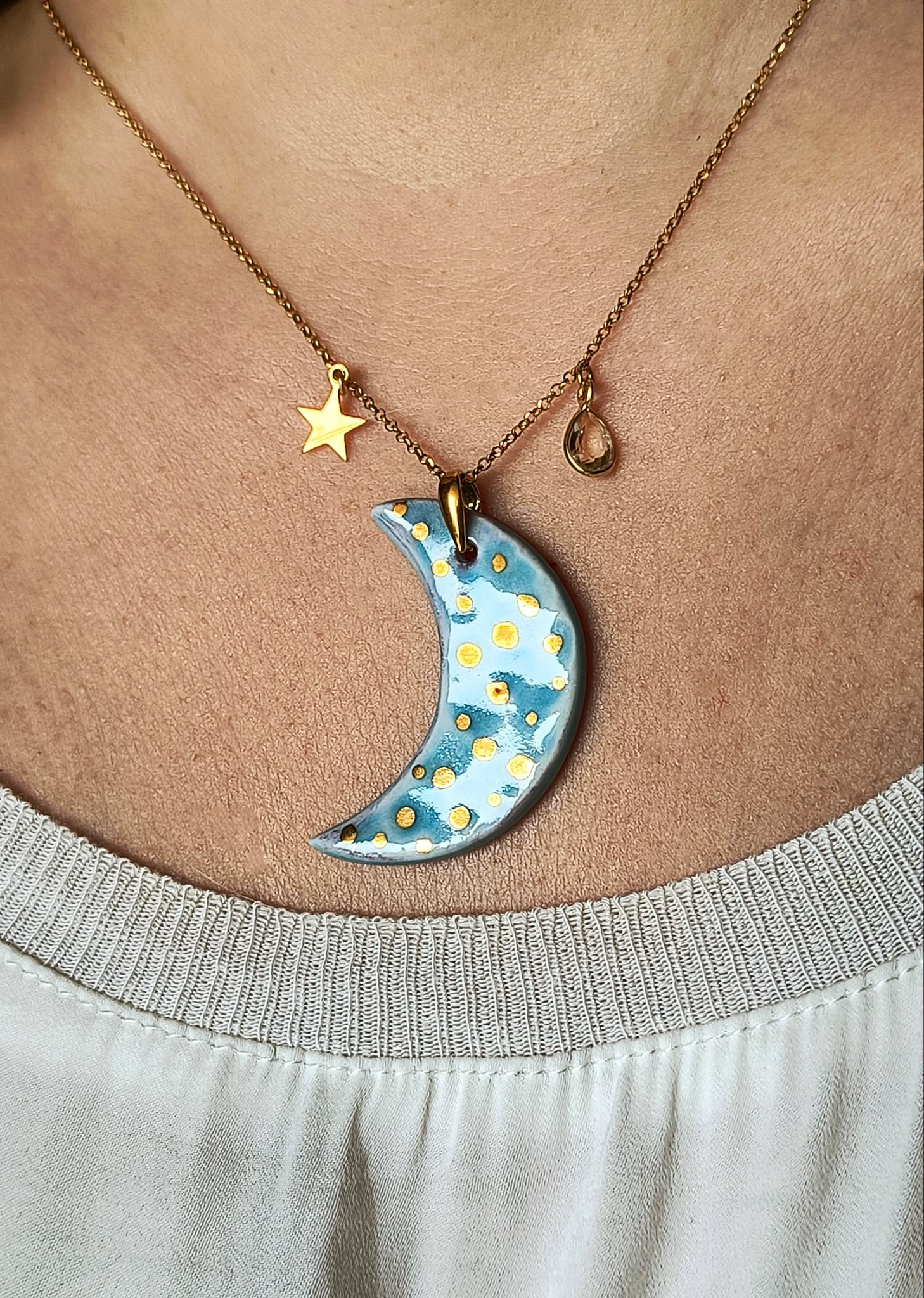 Naszyjnik wykonałam własnoręcznie ze szlachetnej porcelany, zdobiłam szkliwem oraz 24-karatowym złotem.